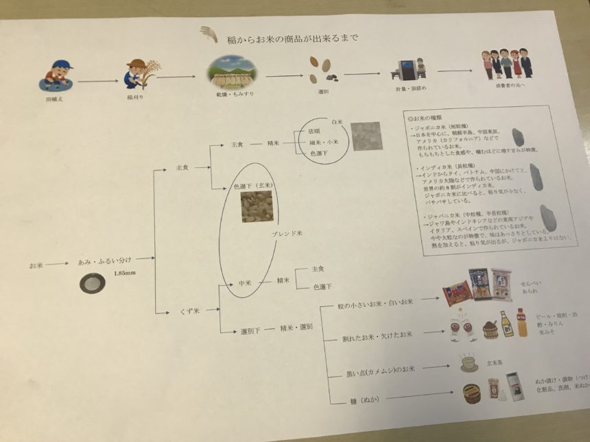 収穫から家庭にお米が届くまでの過程を大まかに説明しました。